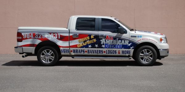 We are a family-owned and operated company in Jacksonville, Florida specializing in signs, vehicle wraps and graphics. When you work with us you can count on receiving excellant quality service by a caring and experienced design team. We print and install ourselves to your specific requirements. Shipping is also availible anywhere in the US. Contact us for more information and the most competitive pricing possible. Whatever your needs from conception to completion , we are here to serve you! Call us at: 904-329-3831 or sales@allamericandecals. com