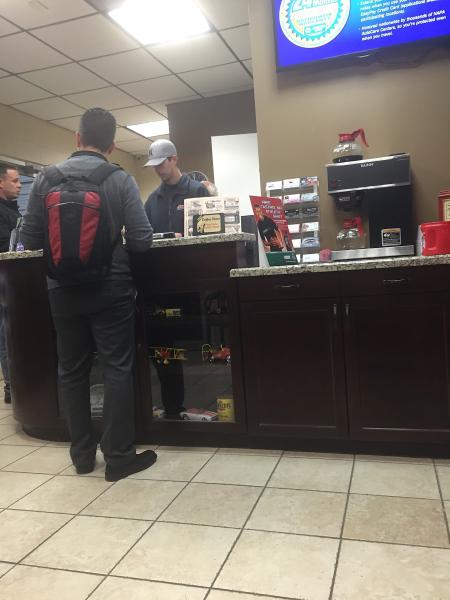 He jumped our battery and recommended several stores to buy a replacement battery since they wouldn't be open on Sunday.